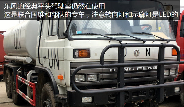 東風(fēng)的經(jīng)典駕駛室仍然在生產(chǎn)并裝車,這個(gè)聯(lián)合國維和部隊(duì)涂裝的東風(fēng)車采用LED的轉(zhuǎn)向燈和示廓燈,與時(shí)俱進(jìn)。
