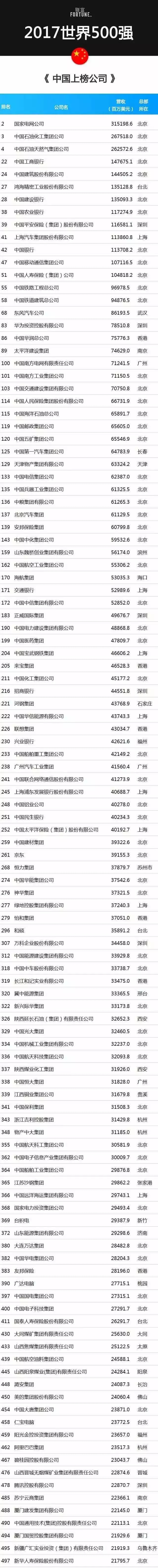 下面我們一起來(lái)看看本年度《財(cái)富》世界500強(qiáng),115企業(yè)中國(guó)企業(yè)都有誰(shuí)?