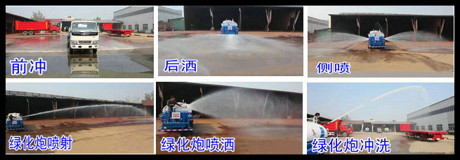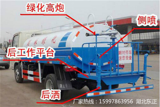 灑水車又稱為噴灑車、多功能灑水車、園林綠化灑水車、水罐車、運(yùn)水車。灑水車適合于各種路面沖洗,樹木、綠化帶、草坪綠化,道路、廠礦企業(yè)施工建設(shè),高空建筑沖洗。具有灑水、壓塵、高、低位噴灑前帶后平臺高炮,可進(jìn)行農(nóng)藥噴灑、護(hù)欄沖洗、等功能。